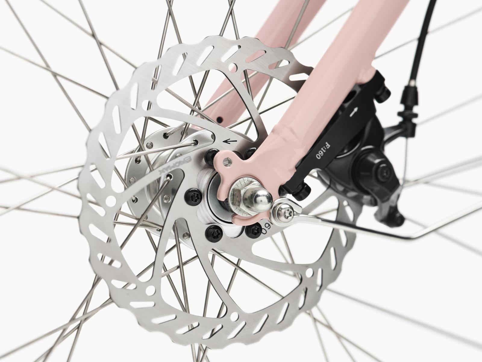 Mit seinen drei Unterstützungsmodi sorgt das in der Hinterradnabe untergebrachte Electra-Antriebssystem für Vertrauen und Kontrolle, während die 7-Gang-Schaltung jede Situation im urbanen Fahrradalltag meistert. Die breiteren Reifen im Format 700 x 40C werden von Flat Mount-Scheibenbremsen schnell und sicher entschleunigt.