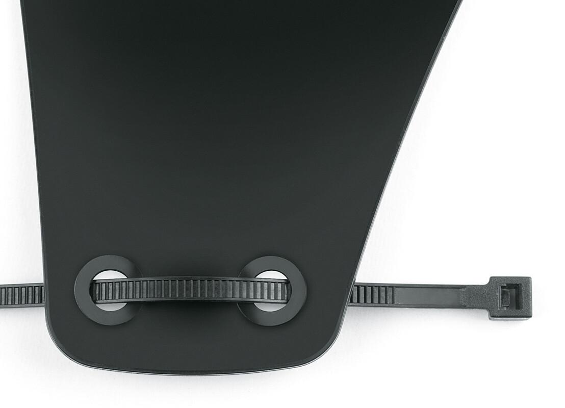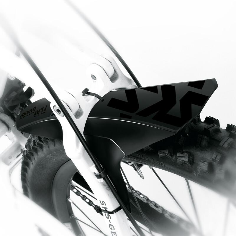 Klein, aber oho: Der super leichte Radschutz FLAP GUARD bietet einen erstaunlich effektiven Spritzschutz. Zusätzlich sorgt der kleine Fender dafür, dass der Schmutz von den Gabeldichtungen fern gehalten wird. Das matt-schwarze Design mit glänzendem SKS-Logo unterstreicht die cleane Optik. Das Schutzblech ist aus weichem, aber robustem Hochleistungskunststoff gefertigt, sodass es flexibel sowohl an der Gabel als auch am Hinterbau anhand der mitgelieferten Kabelbinder montiert werden kann.