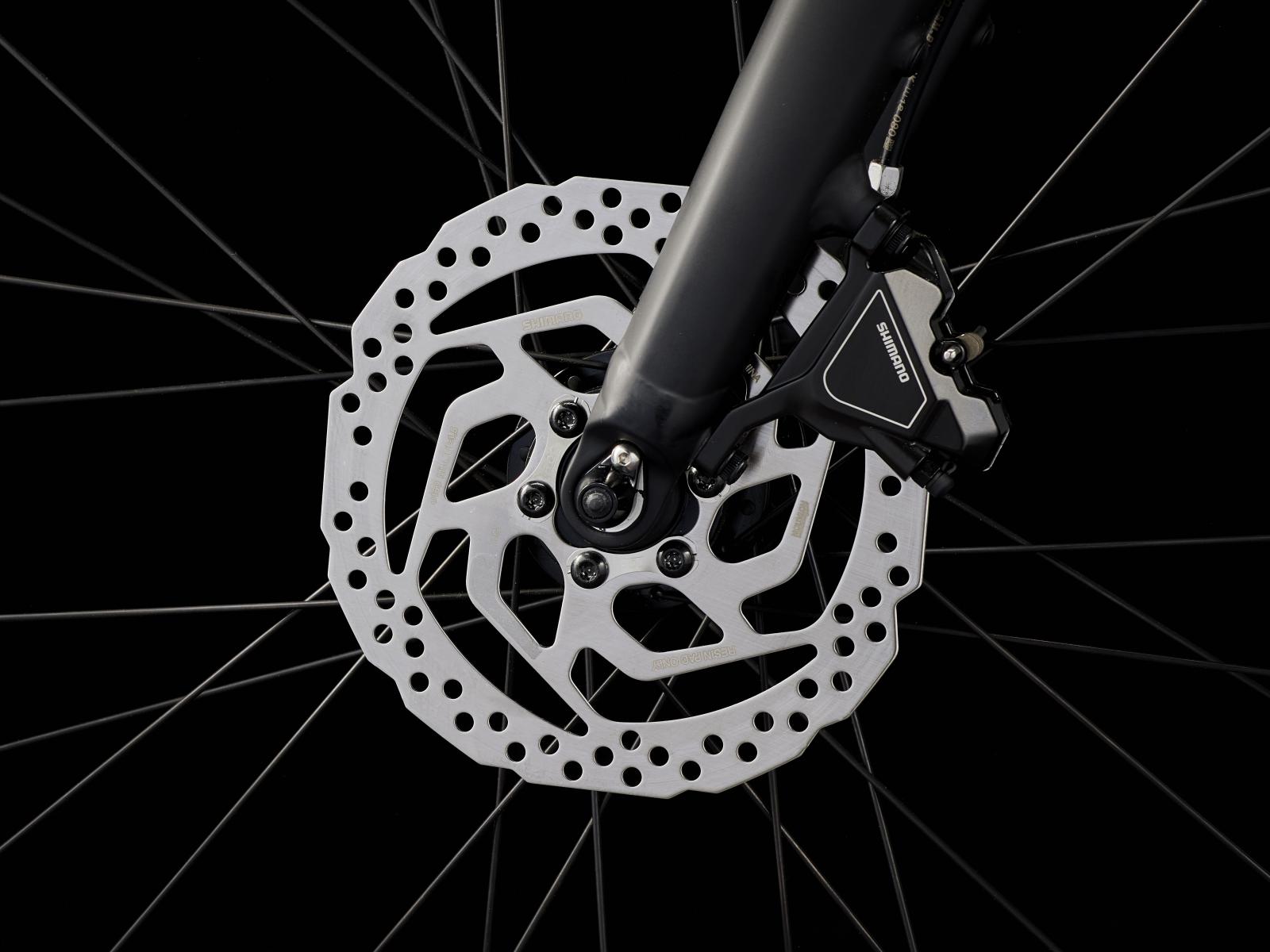 Einen leichten Aluminiumrahmen mit Stagger-Design zum einfachen Auf- und Absteigen, Treks proprietäres Antriebsunterstützungssystem von Hyena mit Nabenmotor mit 250 W Leistung und 40 Nm Drehmoment zur Antriebsunterstützung bis 25 km/h und einen 250 Wh starken Akku für bis zu 55 km Reichweite pro Ladung. Dazu gibt es steife 650B-Laufräder mit breiten 50C-Reifen zur Verbesserung von Geländegängigkeit und Komfort in abwechslungsreichem Terrain, eine zuverlässige 8-Gang-Schaltung von Shimano, hydraulische Scheibenbremsen, eine integrierte, akkugespeiste Beleuchtung und einen Seitenständer.