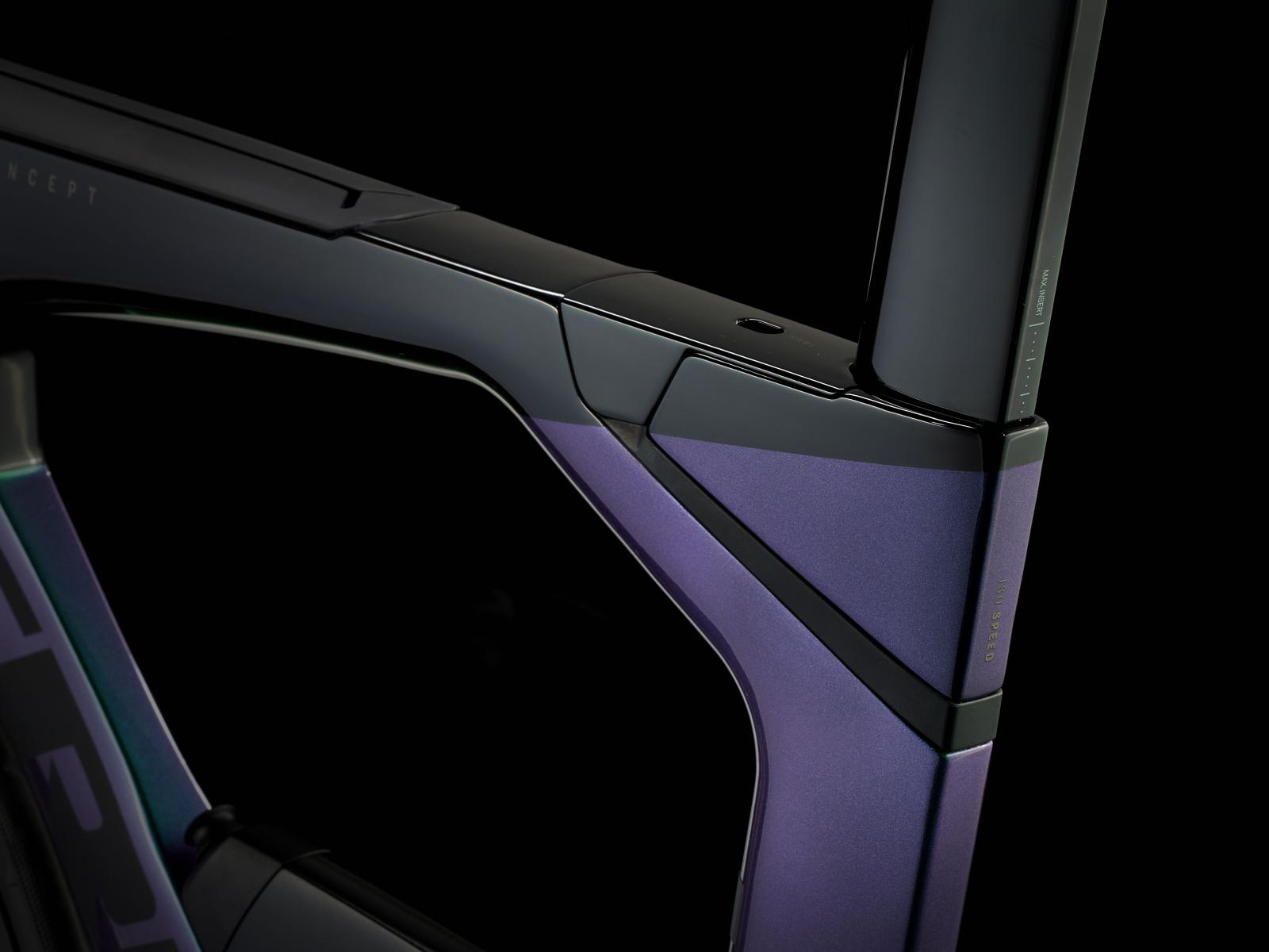 Einen ultraleichten Rahmen aus 800 Series OCLV Carbon, windschnittige Rohre mit Kammtail Virtual Foil-Profil (KVF), eine Speed Concept-Carbongabel mit aerodynamischem Profil, vibrationsdämpfendes IsoSpeed, integrierte Aufbewahrungslösungen für Verpflegung, Flüssigkeit und Pannenkit, einen drahtlosen, elektronischen SRAM Force AXS D2 12fach-Antrieb mit SRAM AXS Clics-Schalthebeln, einen SRAM Force AXS-Powermeter, einen vollständig integrierten Lenker samt Vorbau, einen triathlonspezifischen Bontrager Hilo Comp-Sattel für eine aggressive Aero-Sitzposition, Scheibenbremsen für zuverlässige Bremsleistung und Bontrager Aeolus Pro 51-