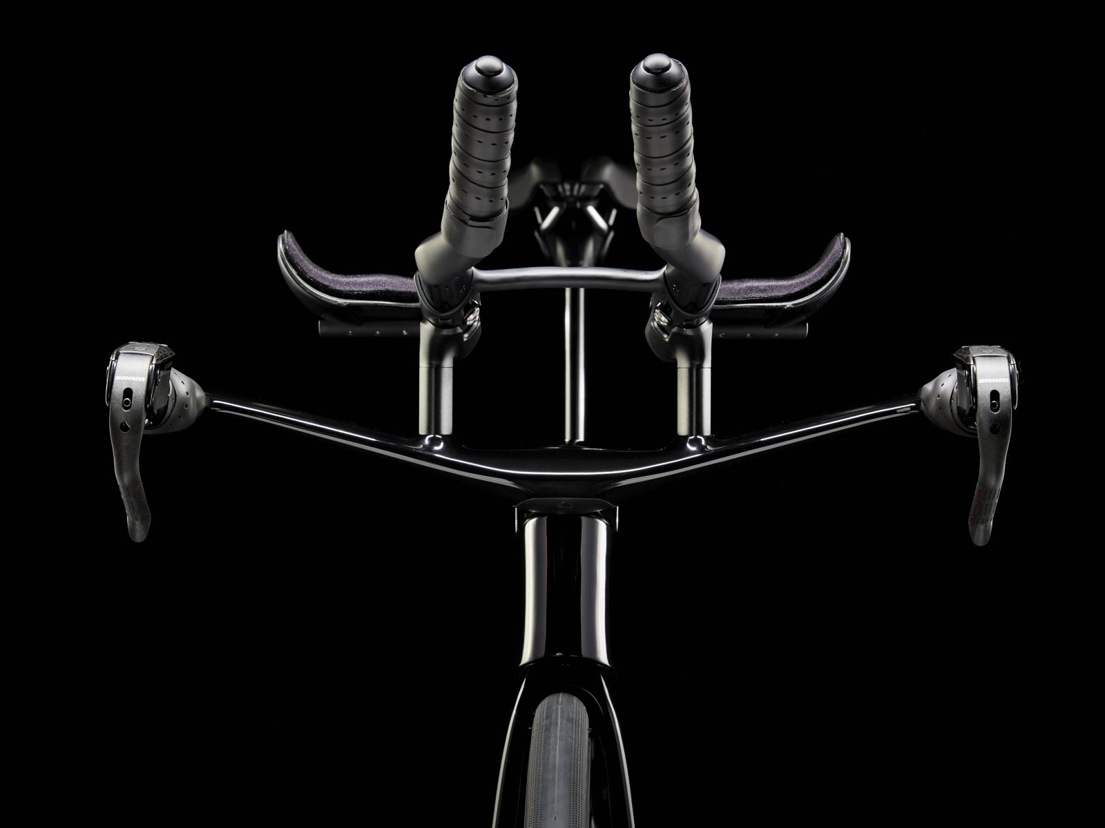 Einen ultraleichten Rahmen aus 800 Series OCLV Carbon, windschnittige Rohre mit Kammtail Virtual Foil-Profil (KVF), eine Speed Concept-Carbongabel mit aerodynamischem Profil, vibrationsdämpfendes IsoSpeed, integrierte Aufbewahrungslösungen für Verpflegung, Flüssigkeit und Pannenkit, einen drahtlosen, elektronischen SRAM Force AXS D2 12fach-Antrieb mit SRAM AXS Clics-Schalthebeln, einen SRAM Force AXS-Powermeter, einen vollständig integrierten Lenker samt Vorbau, einen triathlonspezifischen Bontrager Hilo Comp-Sattel für eine aggressive Aero-Sitzposition, Scheibenbremsen für zuverlässige Bremsleistung und Bontrager Aeolus Pro 51-